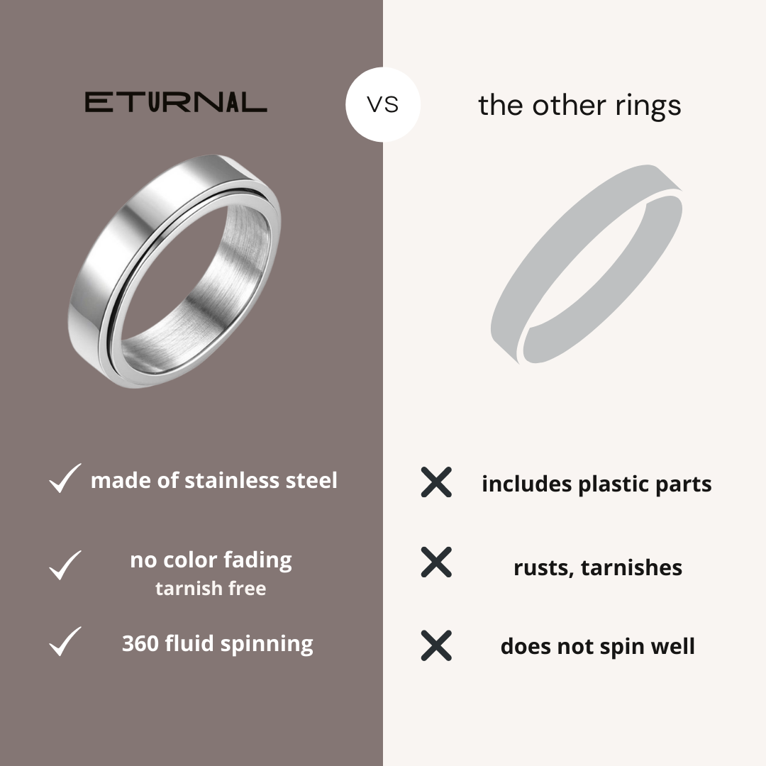 Whether the trigger of your psychomotor agitation is stress, anxiety, or bad habits such as vaping, nail biting, our spinning rings can help your mind unwind so you can focus on what matters.